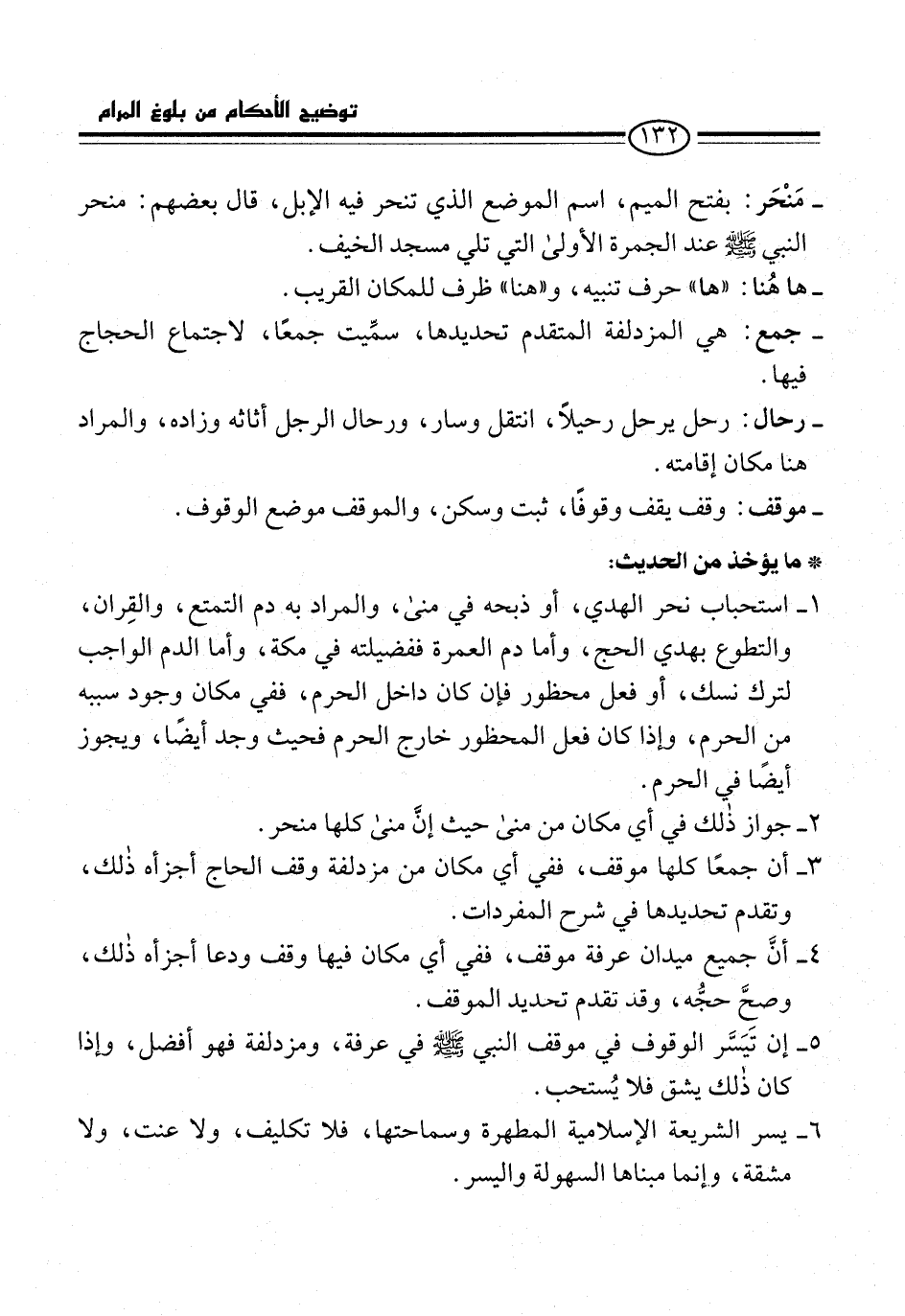 5 - إن تَيسَّر الوقوف في موقف النبي -صلى الله عليه وسلم- في عرفة، ومزدلفة فهو أفضل، وإذا كان ذلك يشق فلا يُستحب.