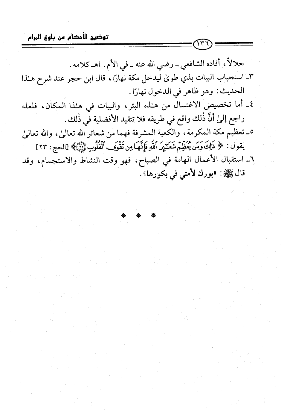 4 - أما تخصيص الاغتسال من هذه البئر، والبيات في هذا المكان، فلعله راجع إلى أنَّ ذلك واقع في طريقه فلا تتقيد الأفضلية في ذلك.