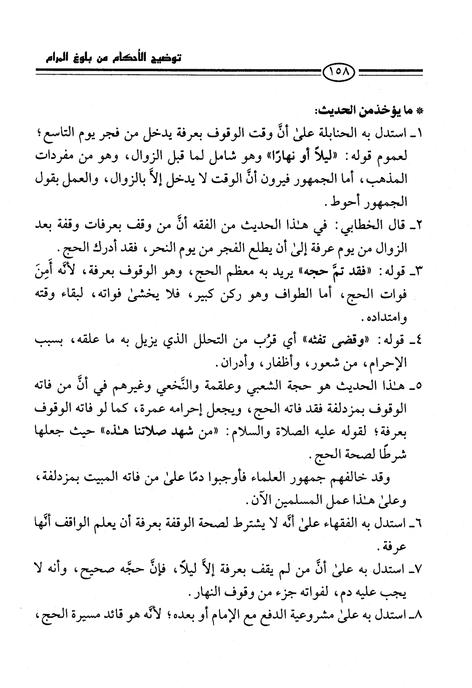 2 - قال الخطابي: في هذا الحديث من الفقه أنَّ من وقف بعرفات وقفة بعد الزوال من يوم عرفة إلى أن يطلع الفجر من يوم النحر، فقد أدرك الحج.
