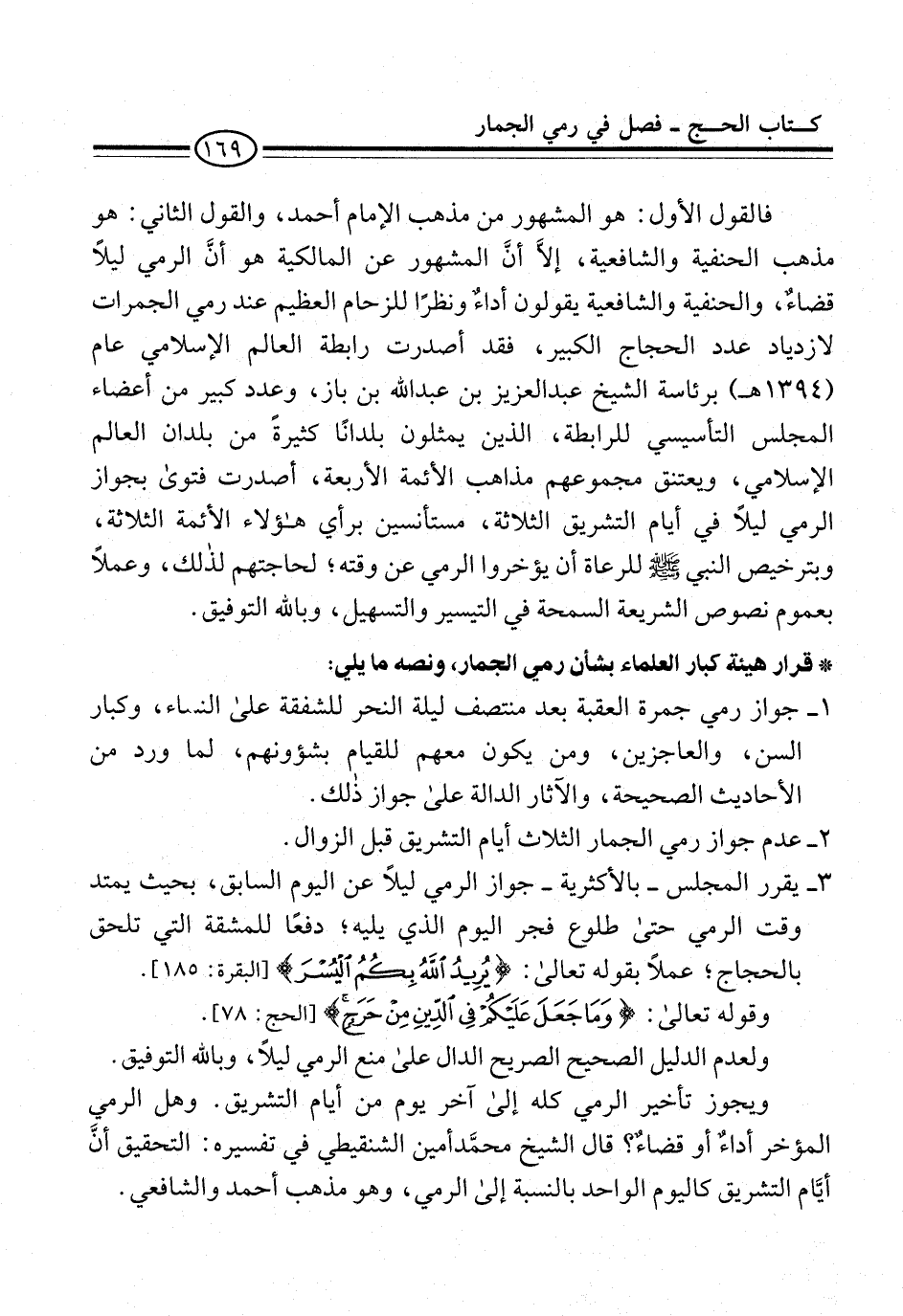 * قرار هيئة كبار العلماء بشأن رمي الجمار، ونصه ما يلي: