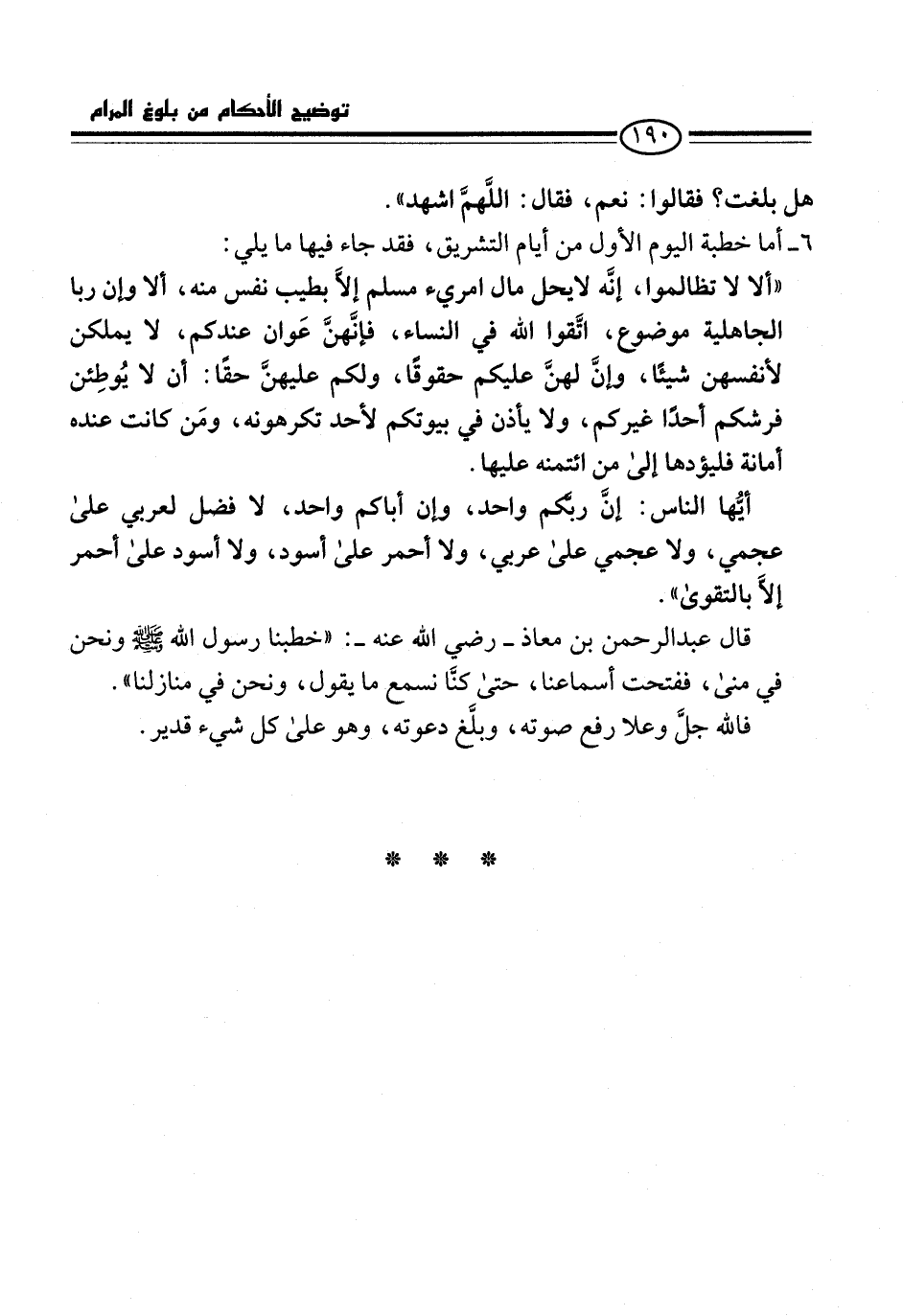 6 - أما خطبة اليوم الأول من أيام التشريق، فقد جاء فيها ما يلي: