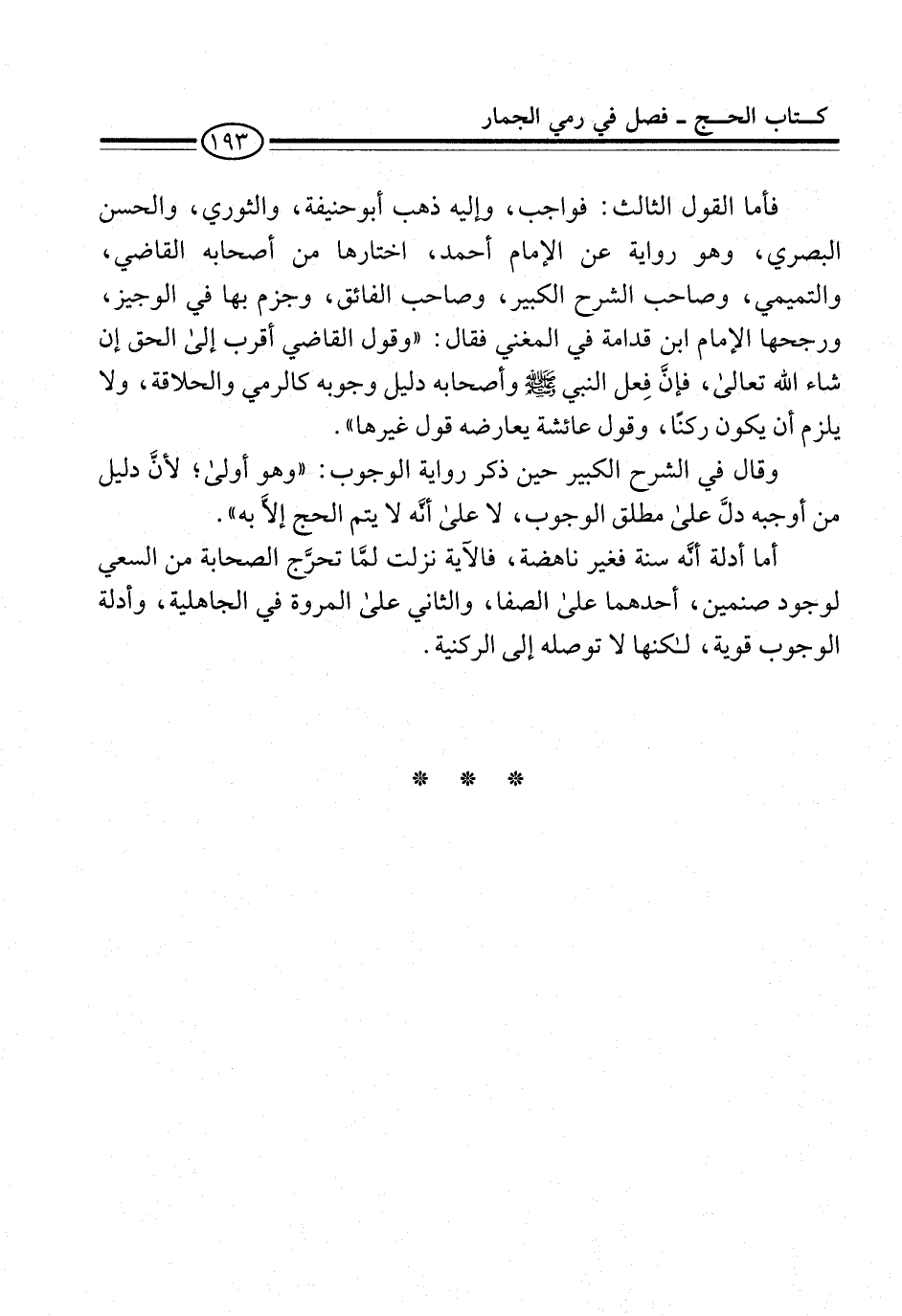 وقال في الشرح الكبير حين ذكر رواية الوجوب: "وهو أولى؛ لأنَّ دليل من أوجبه دلَّ على مطلق الوجوب، لا على أنَّه لا يتم الحج إلاَّ به".
