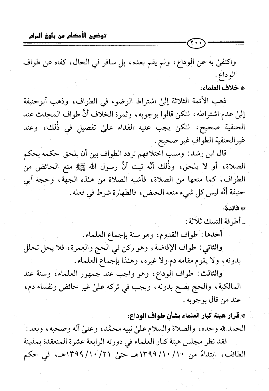 * قرار هيئة كبار العلماء بشأن طواف الوداع: