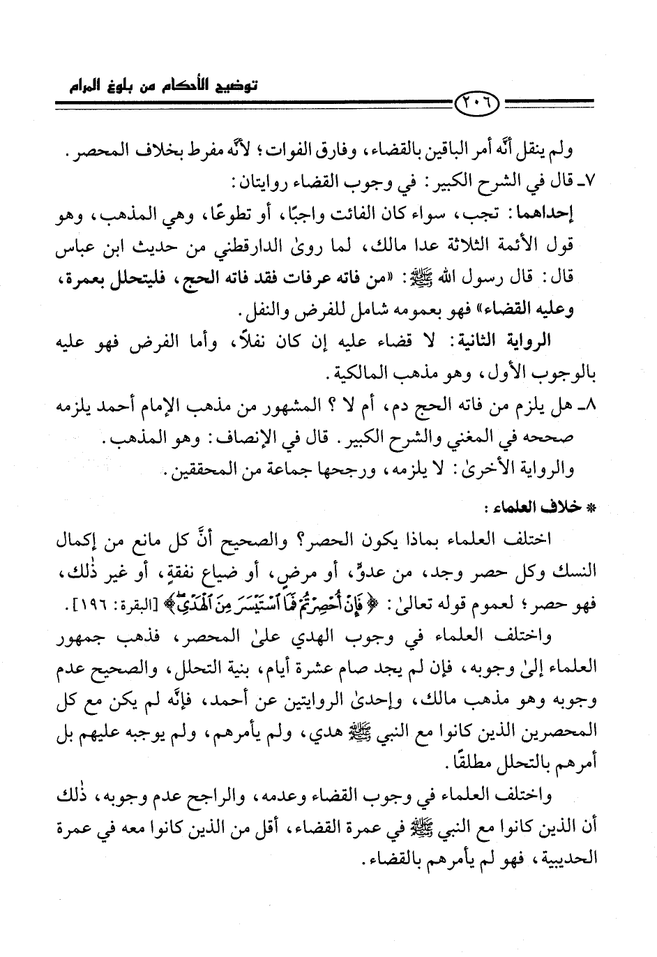 8 - هل يلزم من فاته الحج دم، أم لا؟ المشهور من مذهب الإمام أحمد يلزمه صححه في المغني والشرح الكبير. قال في الإنصاف: وهو المذهب.
