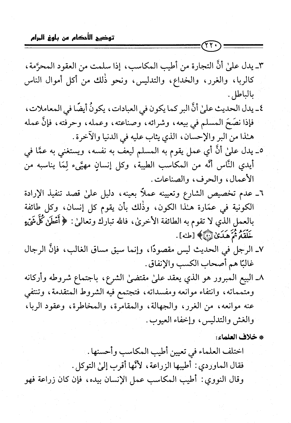 3 - يدل على أنَّ التجارة من أطيب المكاسب، إذا سلمت من العقود المحرَّمة، كالربا، والغرر، والخداع، والتدليس، ونحو ذلك من أكل أموال الناس بالباطل.
