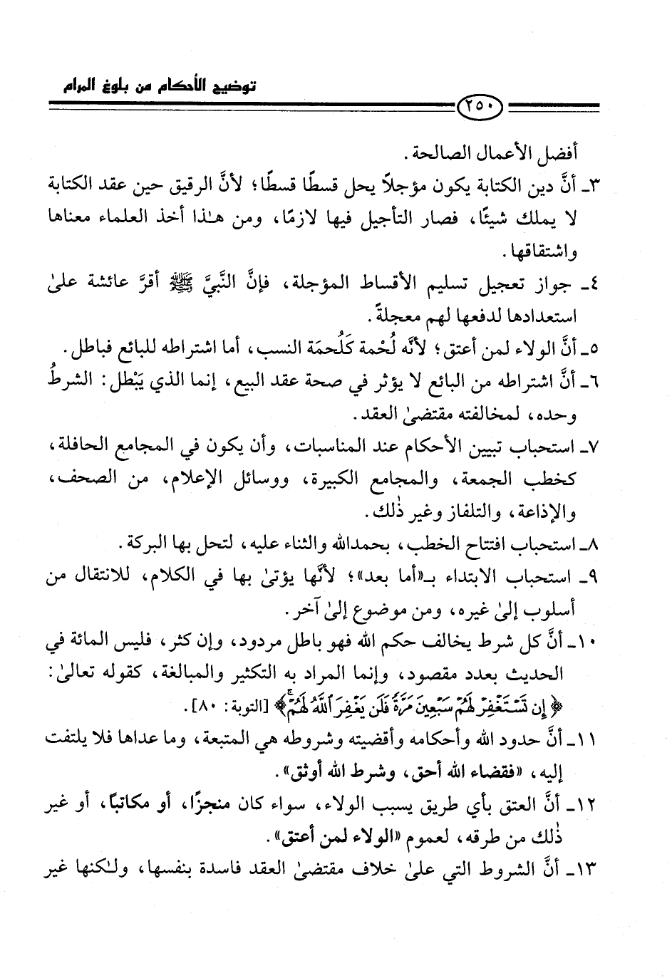 13 - أنَّ الشروط التي على خلاف مقتضى العقد فاسدة بنفسها، ولكنها غير