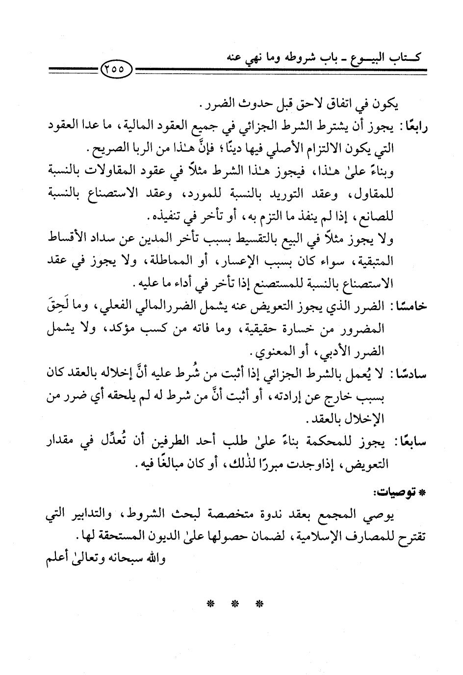 يوصي المجمع بعقد ندوة متخصصة لبحث الشروط، والتدابير التي تقترح للمصارف الإسلامية، لضمان حصولها على الديون المستحقة لها.