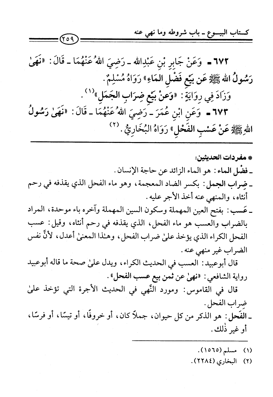 673 - وَعَنِ ابْنِ عُمَرَ -رَضِيَ اللهُ عَنْهُمَا- قَالَ: "نَهَى رَسُولُ اللهِ -صلى الله عليه وسلم- عَنْ عَسْبِ الفَحْلِ" رَوَاهُ البُخَارِيُّ. (¬2)