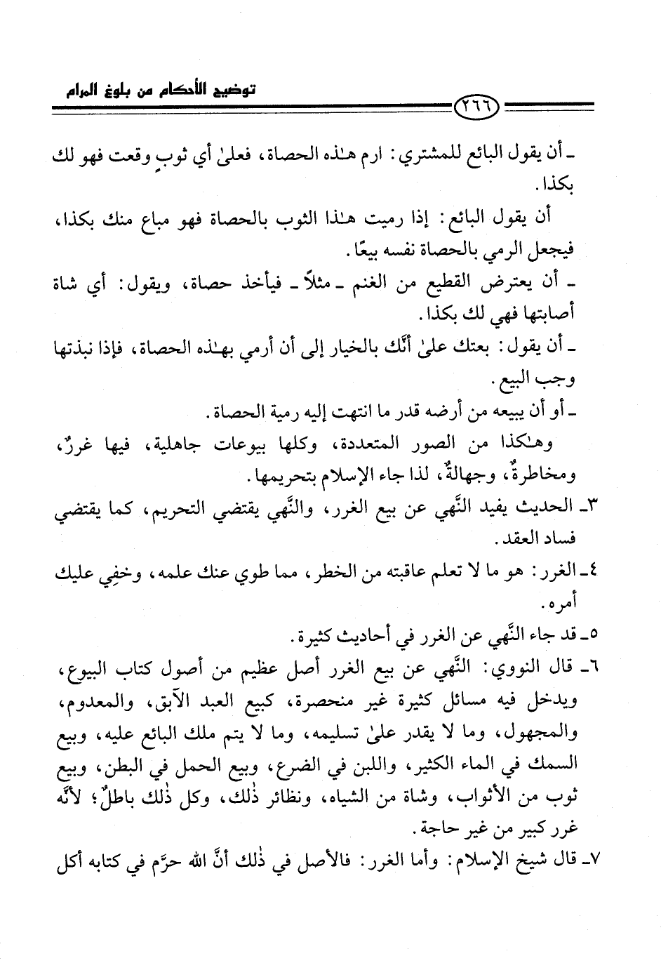 7 - قال شيخ الإسلام: وأما الغرر: فالأصل في ذلك أنَّ الله حرَّم في كتابه أكل