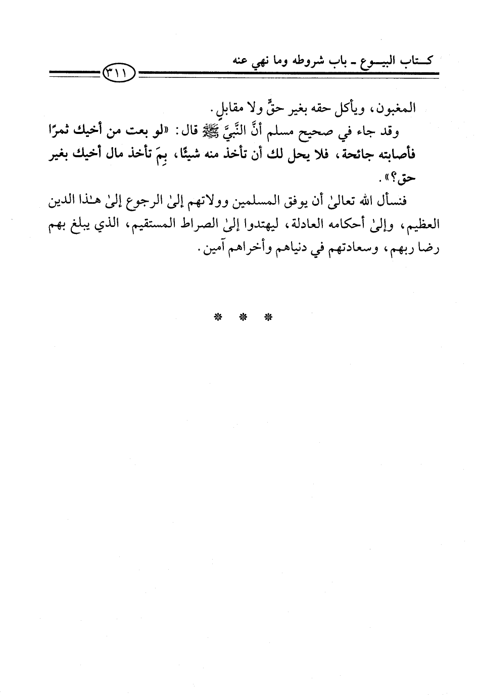 فنسأل الله تعالى أن يوفق المسلمين وولاتهم إلى الرجوع إلى هذا الدين العظيم، وإلى أحكامه العادلة، ليهتدوا إلى الصراط المستقيم، الذي يبلغ بهم رضا ربهم، وسعادتهم في دنياهم وأخراهم آمين.