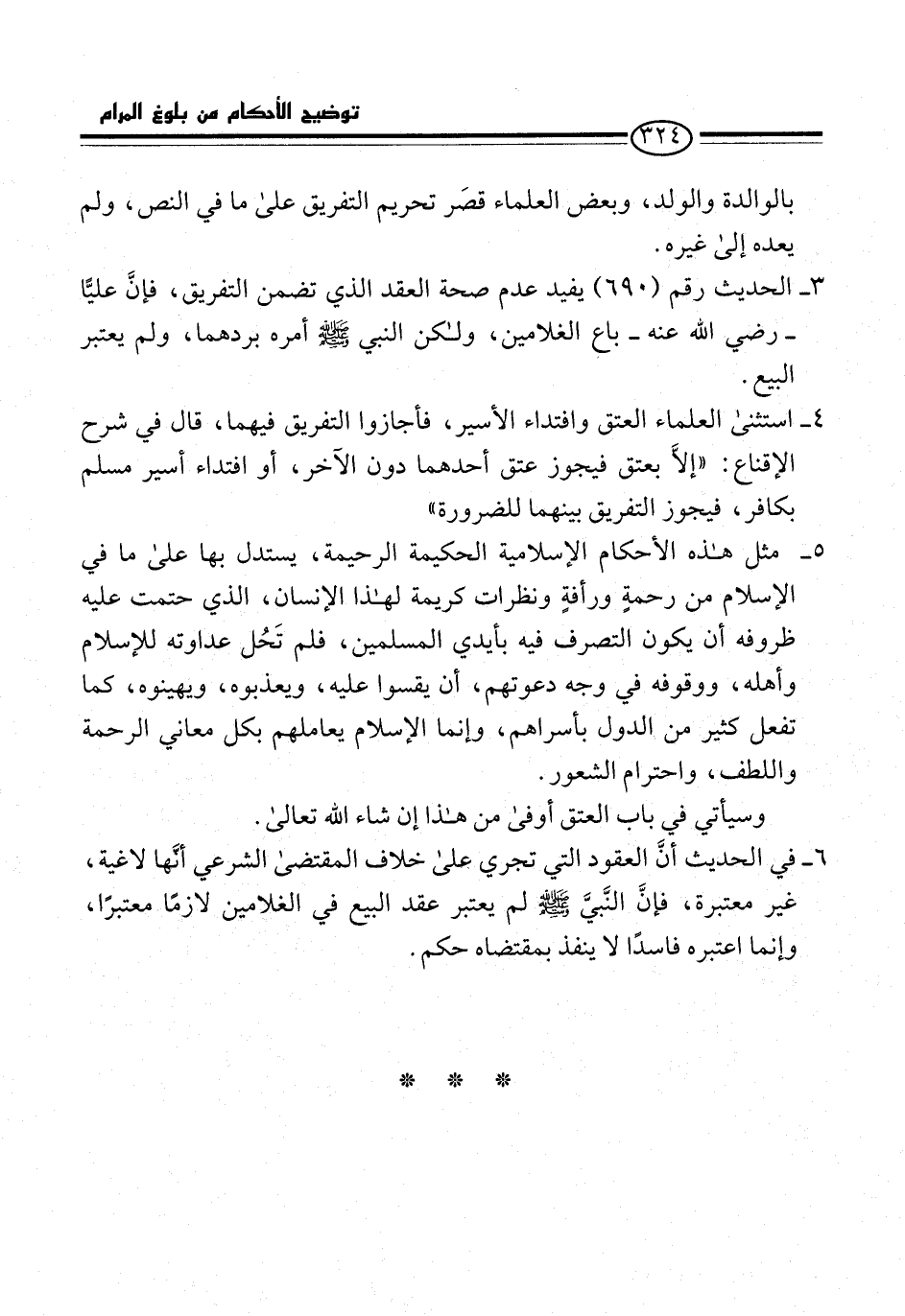 3 - الحديث رقم (690) يفيد عدم صحة العقد الذي تضمن التفريق، فإنَّ عليًّا -رضي الله عنه- باع الغلامين، ولكن النبي -صلى الله عليه وسلم- أمره بردهما، ولم يعتبر البيع.