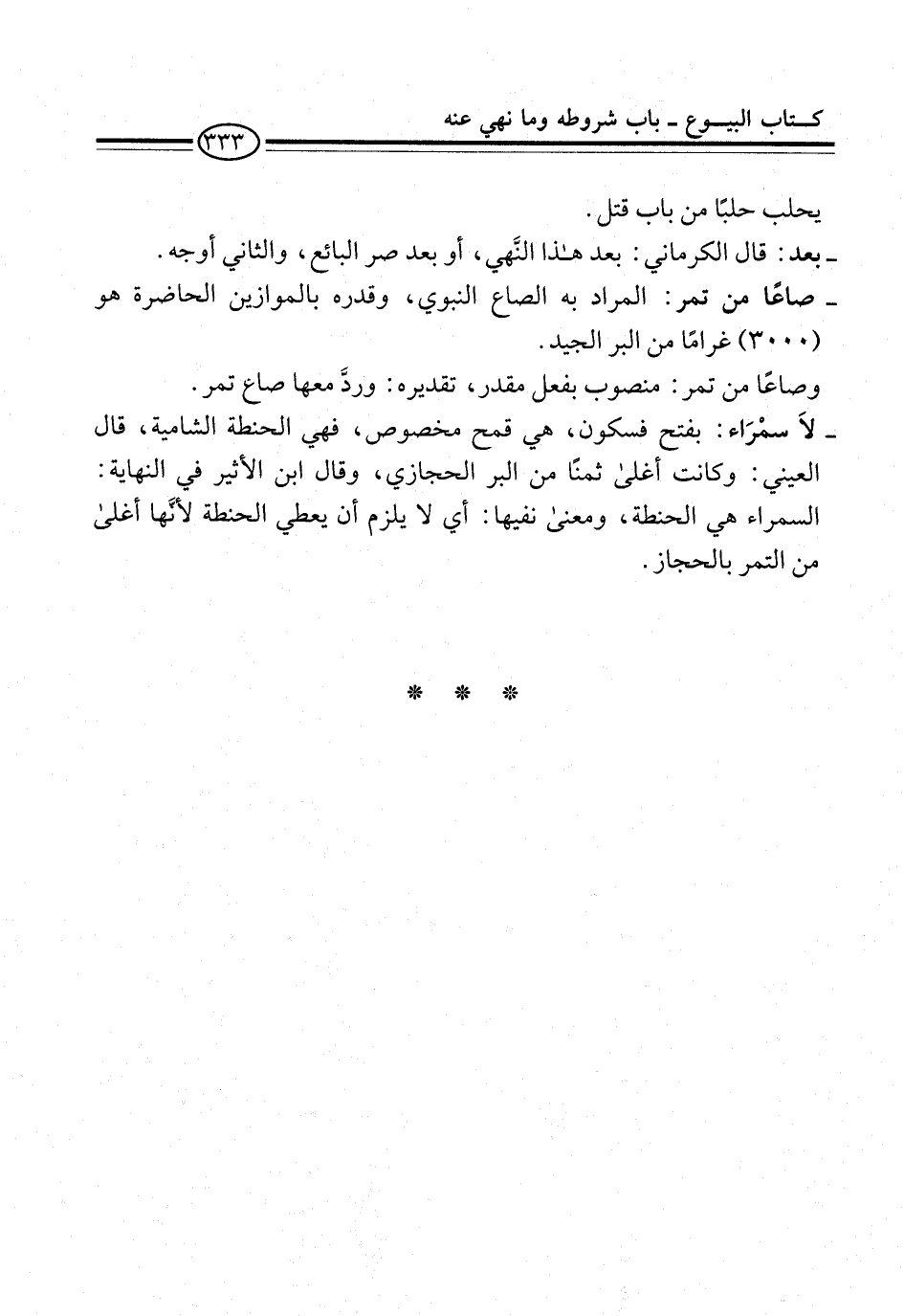 - صاعًا من تمر: المراد به الصاع النبوي، وقدره بالموازين الحاضرة هو (3000) غرامًا من البر الجيد.