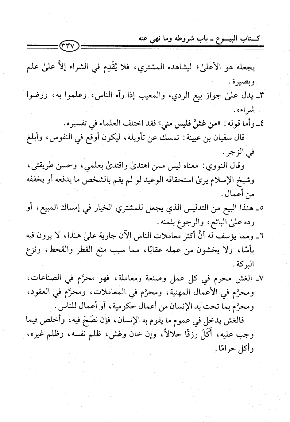 7 - الغش محرم في كل عمل وصنعة ومعاملة، فهو محرَّم في الصناعات، ومحرَّم في الأعمال المهنية، ومحرَّم في المعاملات، ومحرَّم في العقود، ومحرَّم بما تحت يد الإنسان من أعمال حكومية، أو أعمال للناس.