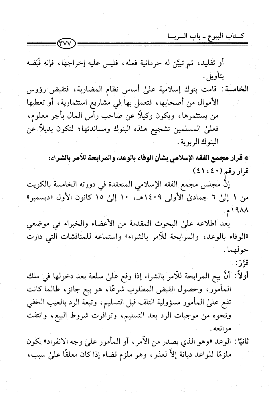 * قرار مجمعى الفقه الإسلامي بشأن الوفاء بالوعد، والمرابحة للآمر بالشراء: قرار رقم (40، 41)