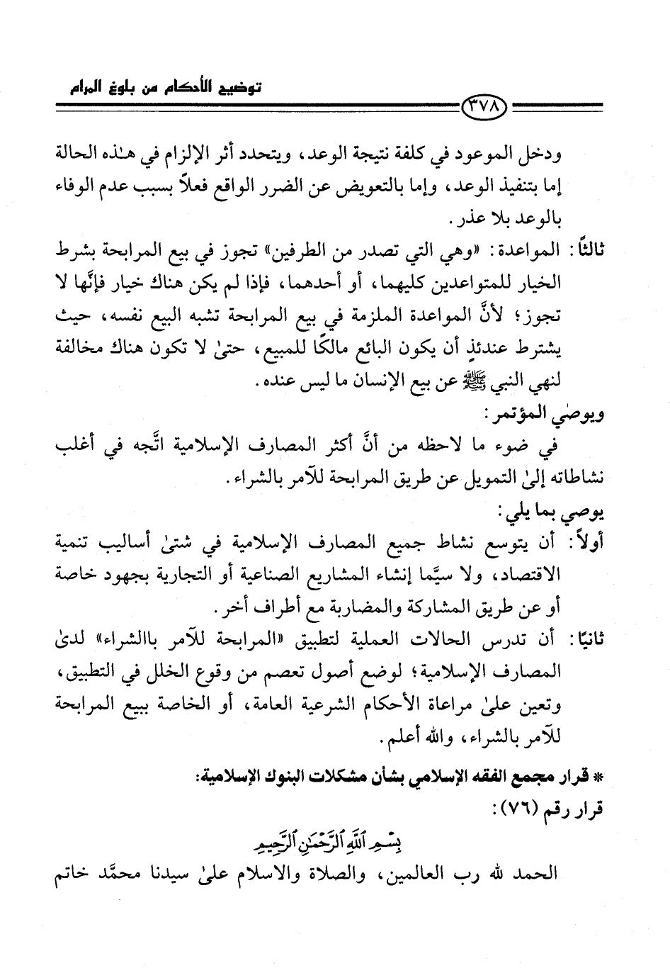 * قرار مجمع الفقه الإسلامي بشان مشكلات البنوك الإسلامية: قرار رقم (76):