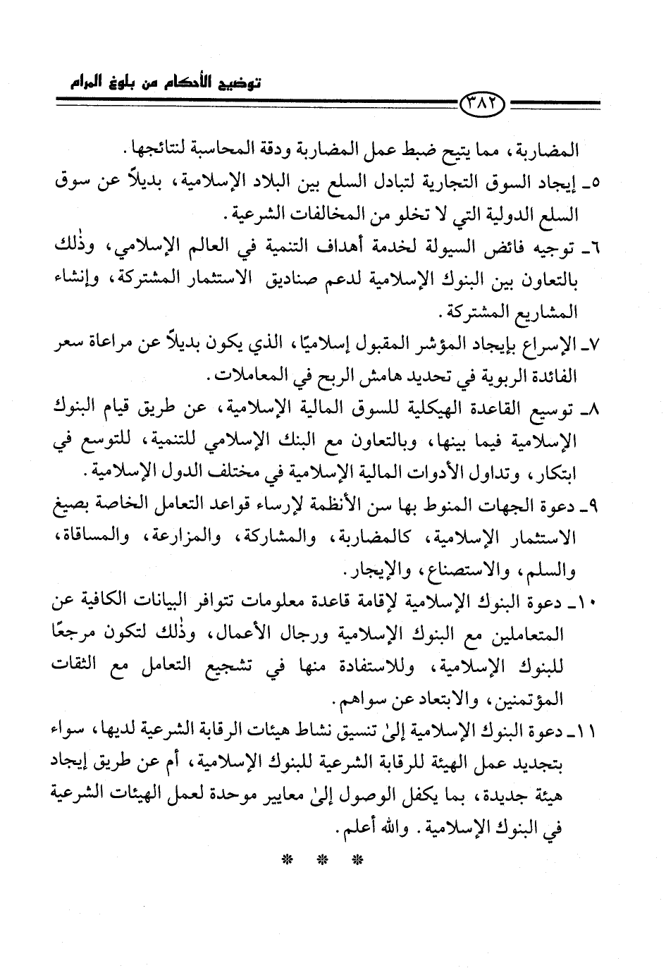 8 - توسيع القاعدة الهيكلية للسوق المالية الإسلامية، عن طريق قيام البنوك الإسلامية فيما بينها، وبالتعاون مع البنك الإسلامي للتنمية، للتوسع في ابتكار، وتداول الأدوات المالية الإسلامية في مختلف الدول الإسلامية.