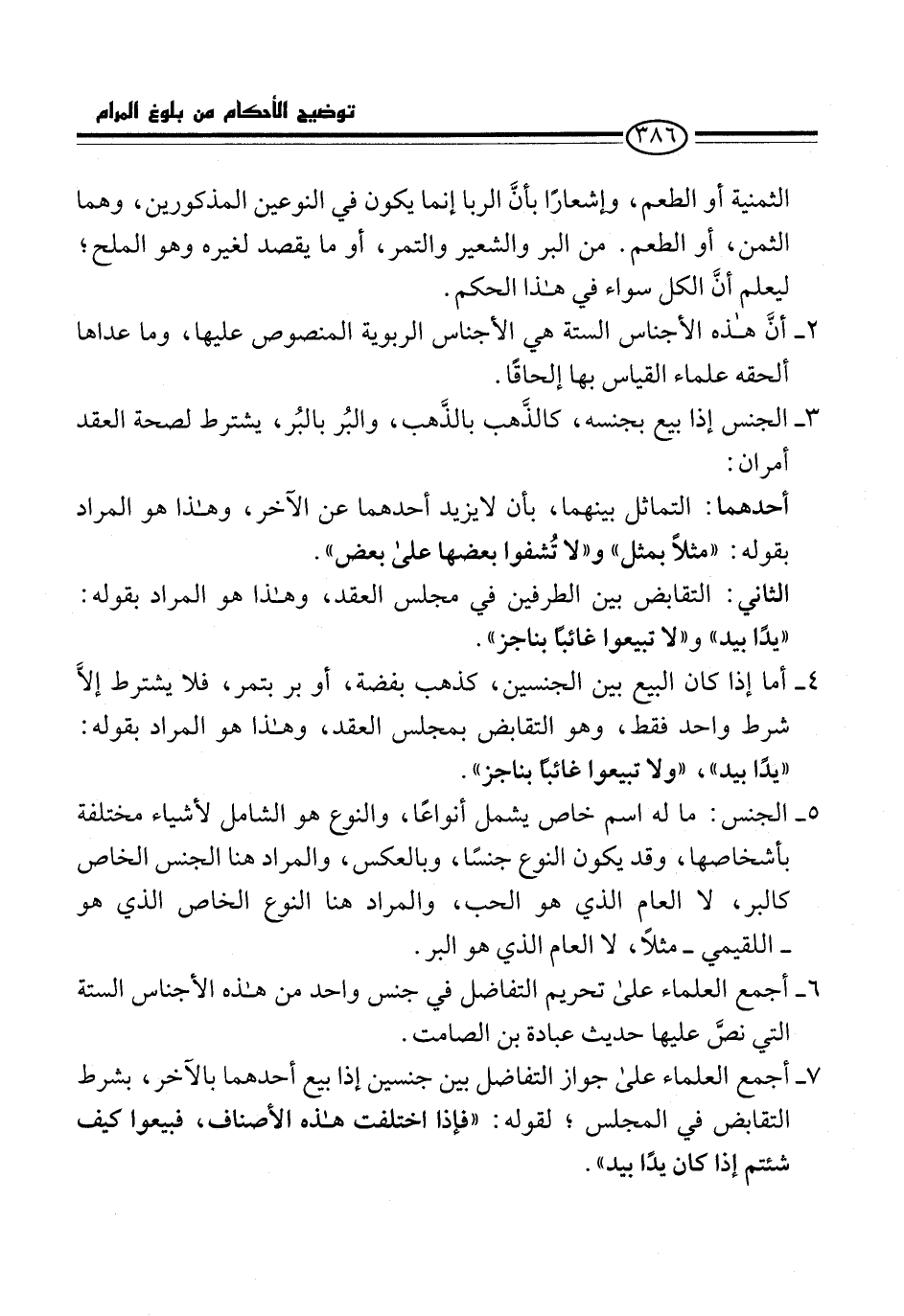 6 - أجمع العلماء على تحريم التفاضل في جنس واحد من هذه الأجناس الستة التي نصَّ عليها حديث عبادة بن الصامت.