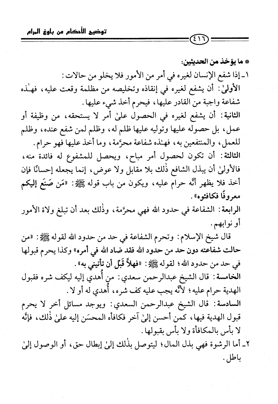الخامسة: قال الشيخ عبد الرحمن سعدي: من أُهدي إليه ليكف شره فقبول الهدية حرام عليه؛ لأنَّه يجب عليه كف شره، أُهدي له أو لا.