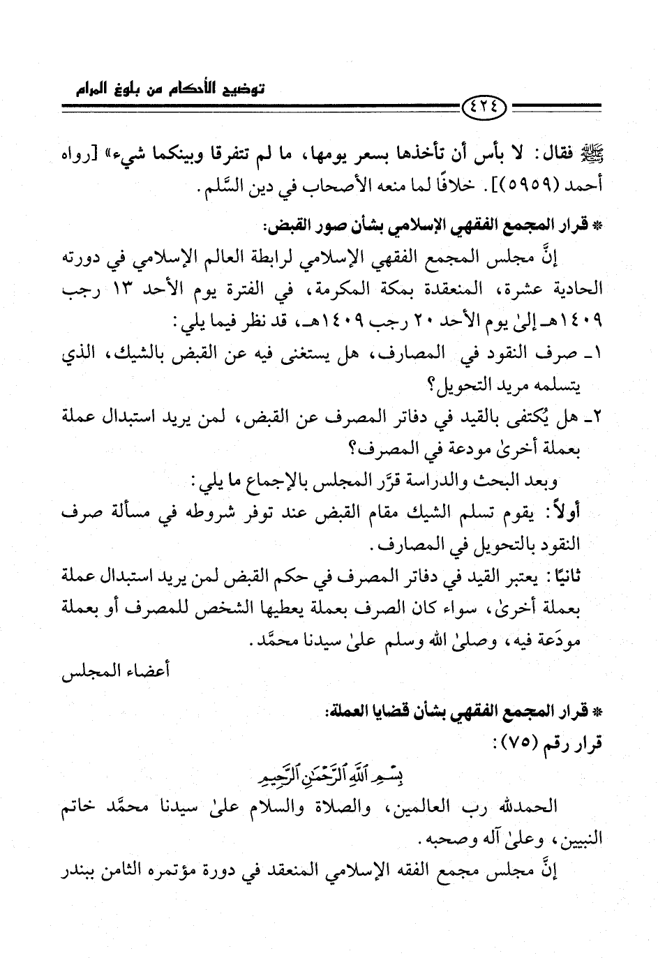 * قرار المجمع الفقهي بشأن قضايا العملة: قرار رقم (75):