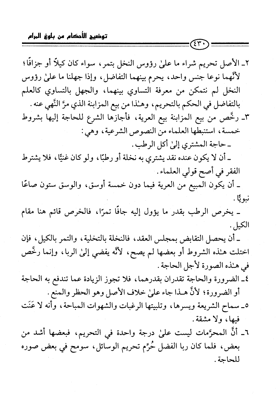 3 - رخَّص بيع المزابنة بيع العرية، فأجازها الشرع للحاجة إليها بشروط خمسة، استنبطها العلماء من النصوص الشرعية، وهي: