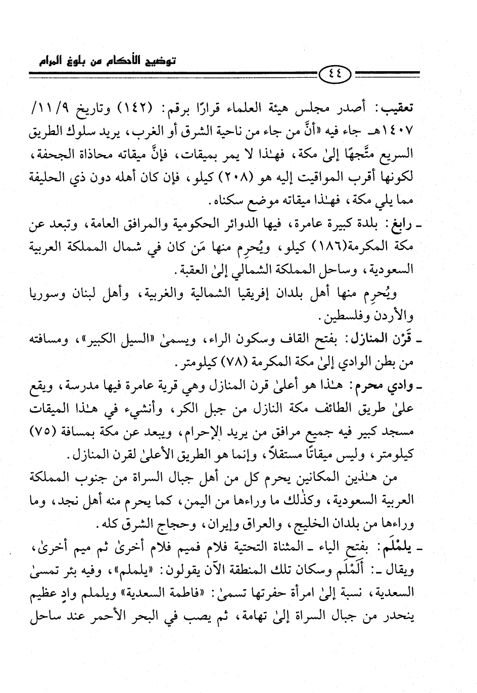 تعقيب: أصدر مجلس هيئة العلماء قرارًا برقم: (142) وتاريخ 9/ 11/ 1407 هـ جاء فيه "أنَّ من جاء من ناحية الشرق أو الغرب، يريد سلوك الطريق السريع متَّجهًا إلى مكة، فهذا لا يمر بميقات، فإنَّ ميقاته محاذاة الجحفة، لكونها أقرب المواقيت إليه هو (208) كيلو، فإن كان أهله دون ذي الحليفة مما يلي مكة، فهذا ميقاته موضع سكناه.
