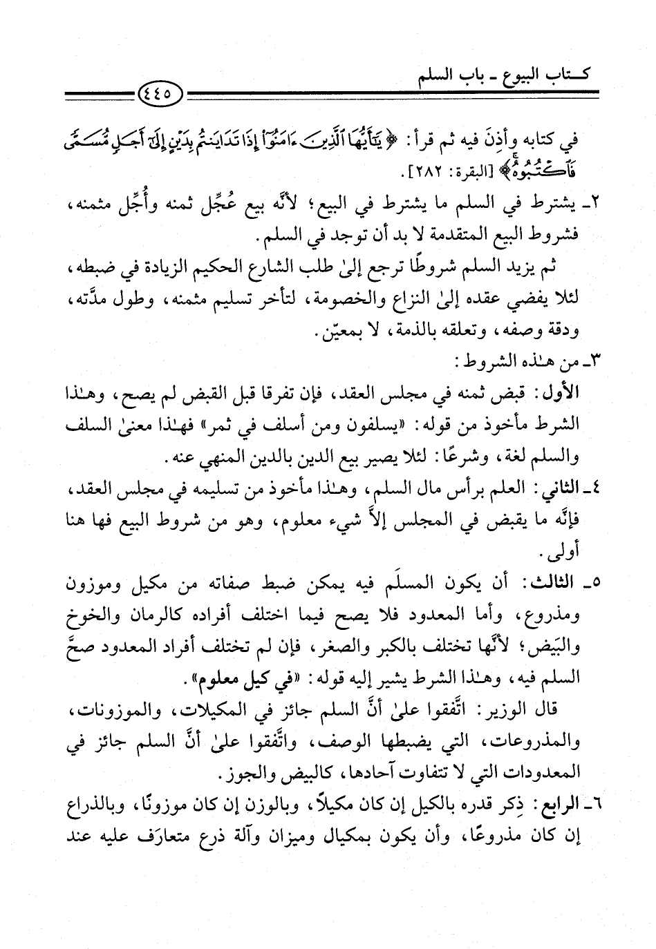2 - يشترط في السلم ما يشترط في البيع؛ لأنَّه بيع عُجِّل ثمنه وأُجِّل مثمنه، فشروط البيع المتقدمة لابد أن توجد في السلم.