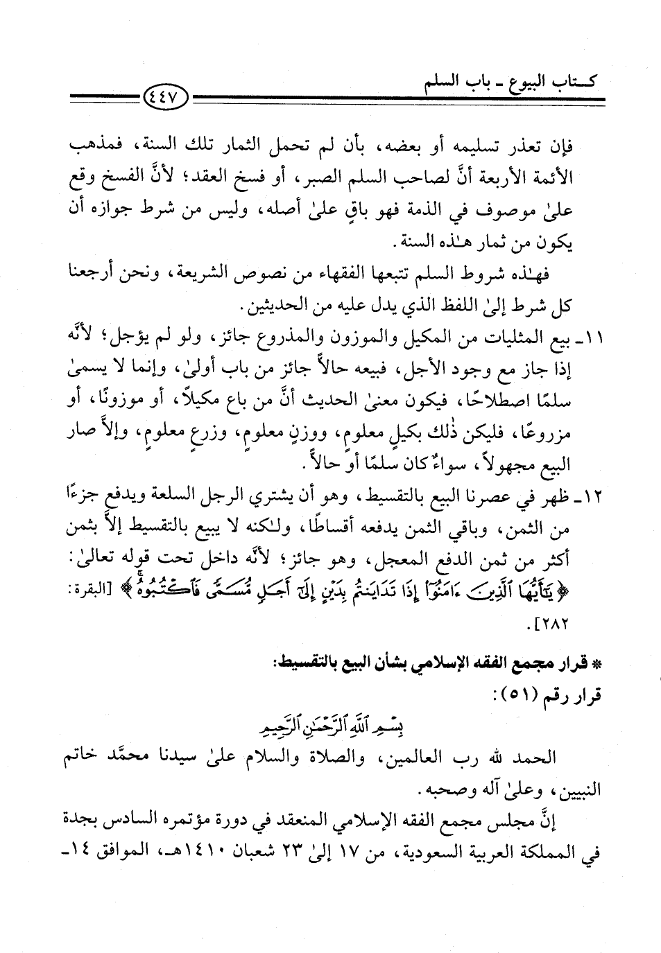 * قرار مجمع الفقه الإسلامي بشأن البيع بالتقسيط: قرار رقم (51):