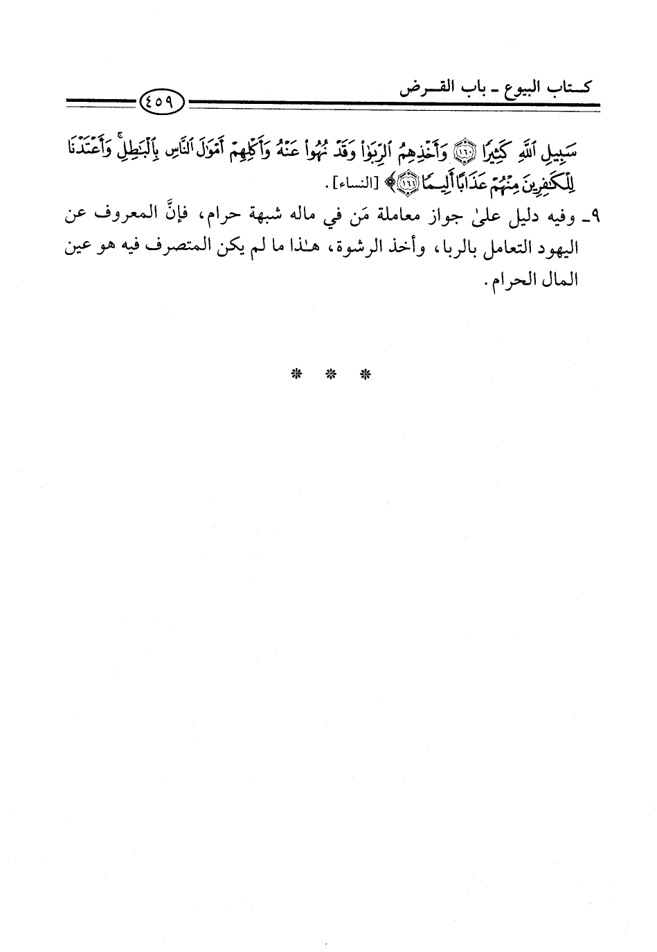 سَبِيلِ اللَّهِ كَثِيرًا (160) وَأَخْذِهِمُ الرِّبَا وَقَدْ نُهُوا عَنْهُ وَأَكْلِهِمْ أَمْوَالَ النَّاسِ بِالْبَاطِلِ وَأَعْتَدْنَا لِلْكَافِرِينَ مِنْهُمْ عَذَابًا أَلِيمًا} [النساء].