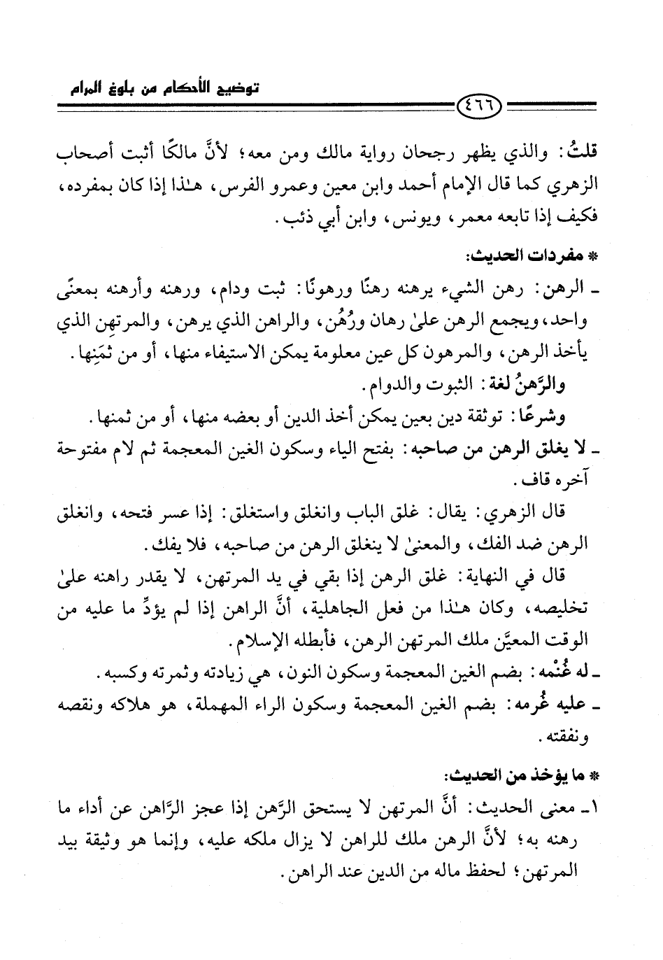- لا يغلق الرهن من صاحبه: بفتح الياء وسكون الغين المعجمة ثم لام مفتوحة آخره قاف.