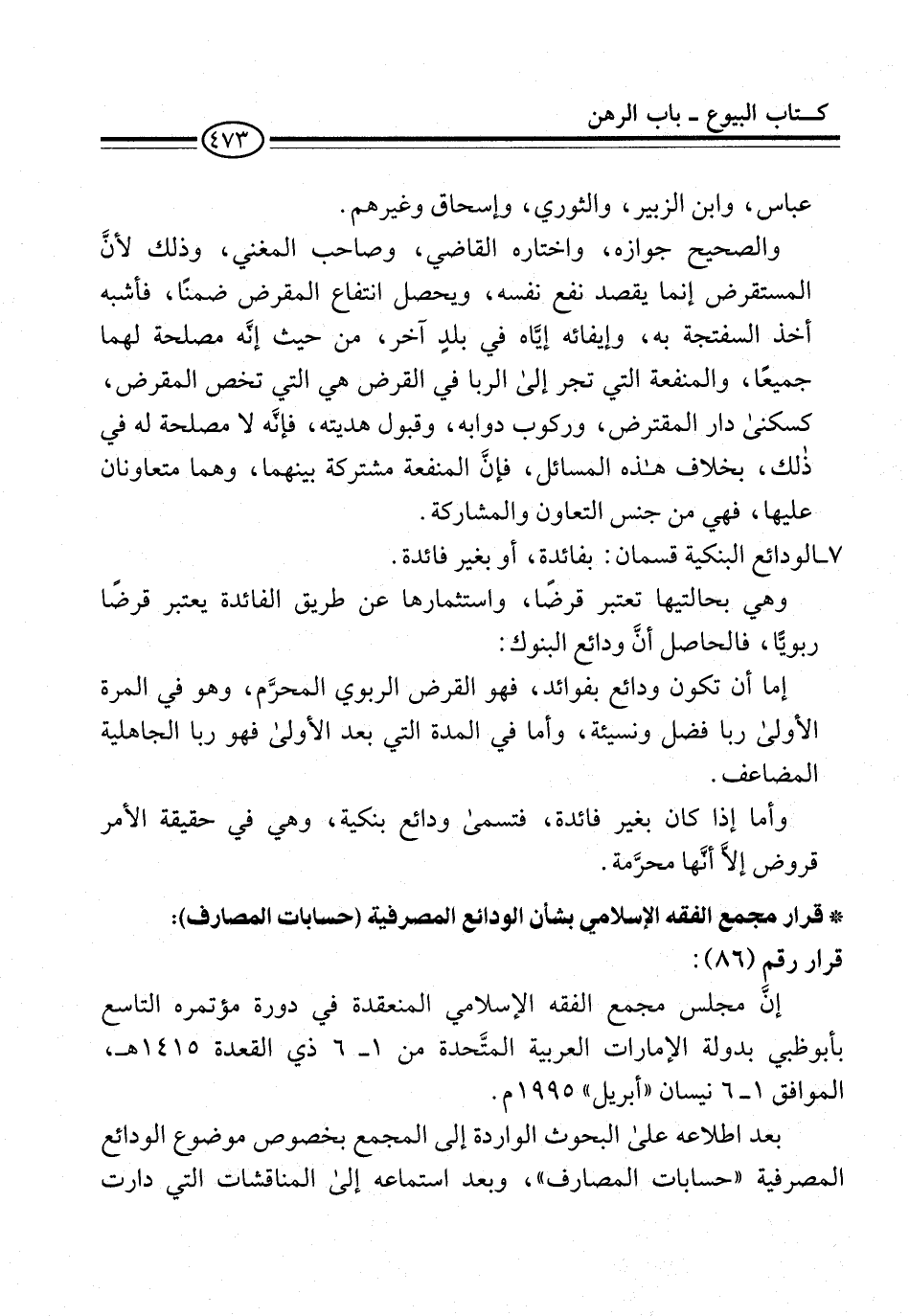 * قرار مجمع الفقه الإسلامي بشأن الودائع المصرفية (حسابات المصارف): قرار رقم (86):