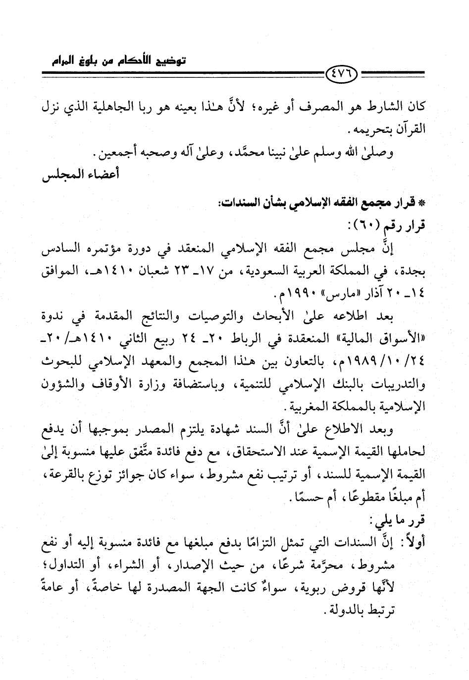* قرار مجمع الفقه الإسلامي بشأن السندات: قرار رقم (60):