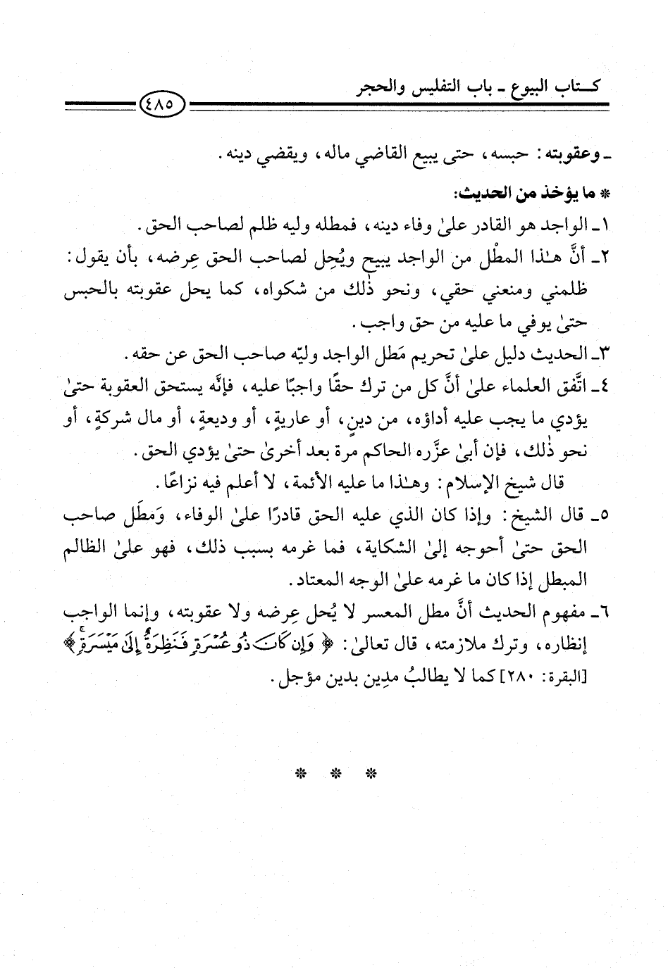 2 - أنَّ هذا المطْل من الواجد يبيع ويُحِل لصاحب الحق عِرضه، بأن يقول: ظلمني ومنعني حقي، ونحو ذلك من شكواه، كما يحل عقوبته بالحبس حتى يوفي ما عليه من حق واجب.