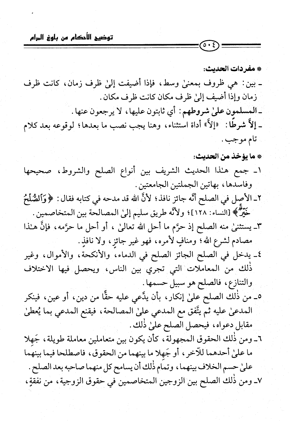 1 - جمع هذا الحديث الشريف بين أنواع الصلح والشروط، صحيحها وفاسدها، بهاتين الجملتين الجامعتين.