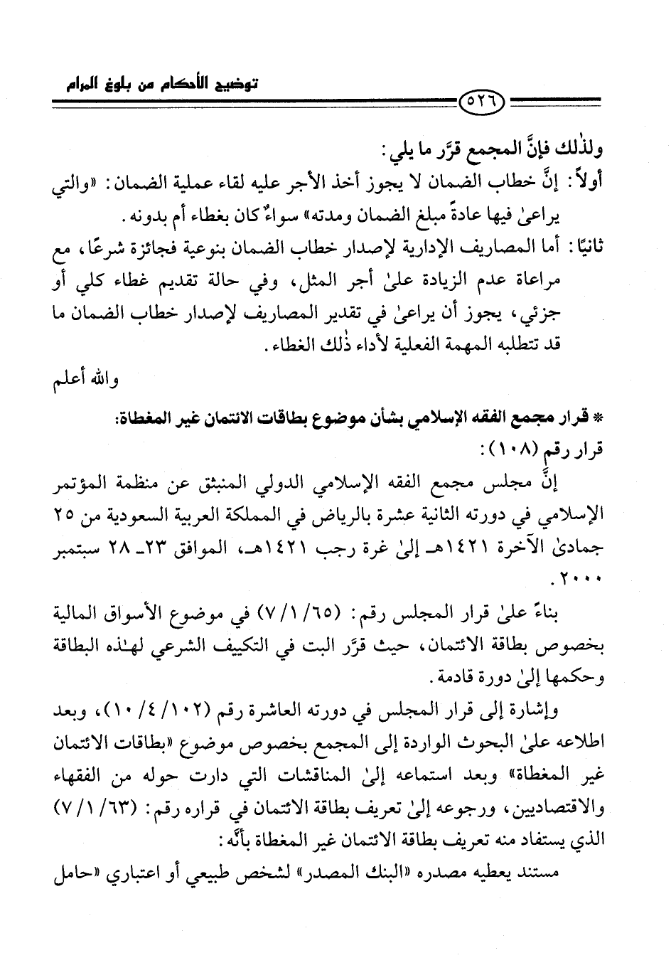 * قرار مجمع الفقه الإسلامي بشأن موضوع بطاقات الائتمان غير المغطاة: قرار رقم (108):