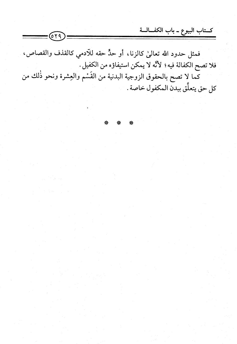 فمثل حدود الله تعالى كالزنا، أو حدٍّ حقه للآدمي كالقذف والقصاص، فلا تصح الكفالة فيه؛ لأنَّه لا يمكن استيفاؤه من الكفيل.