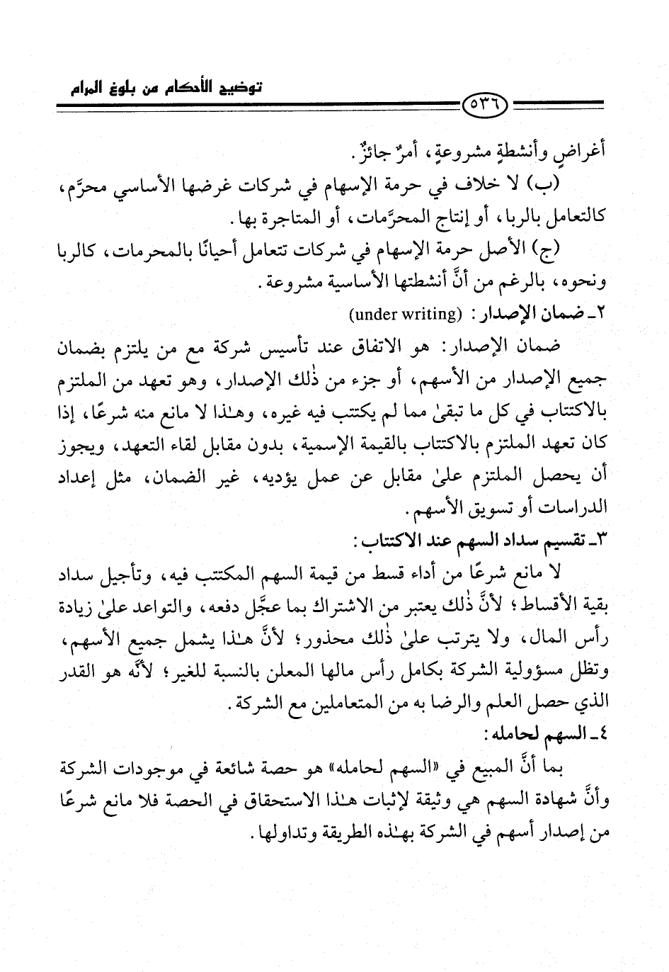 (ج) الأصل حرمة الإسهام في شركات تتعامل أحيانًا بالمحرمات، كالربا ونحوه، بالرغم من أنَّ أنشطتها الأساسية مشروعة.