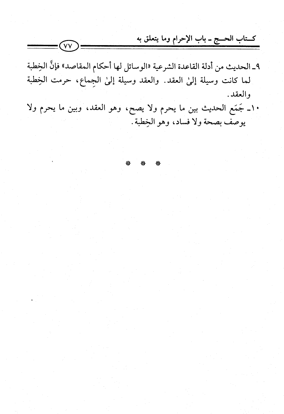 10 - جَمَع الحديث بين ما يحرم ولا يصح، وهو العقد، وبين ما يحرم ولا يوصف بصحة ولا فساد، وهو الخِطبة.