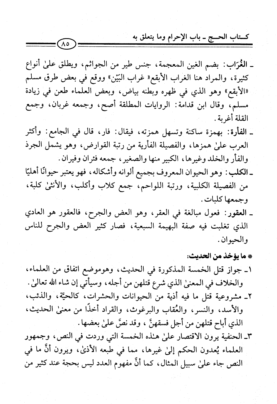 3 - الحنفية يرون الاقتصار على هذه الخمسة التي وردت في النص، وجمهور العلماء يُعدون الحكم إلى غيرها، مما في طبعه الأذى، ويرون أنَّ ما في النص جاء على سبيل المثال، كما أنَّ مفهوم العدد ليس بحجة عند كثير من