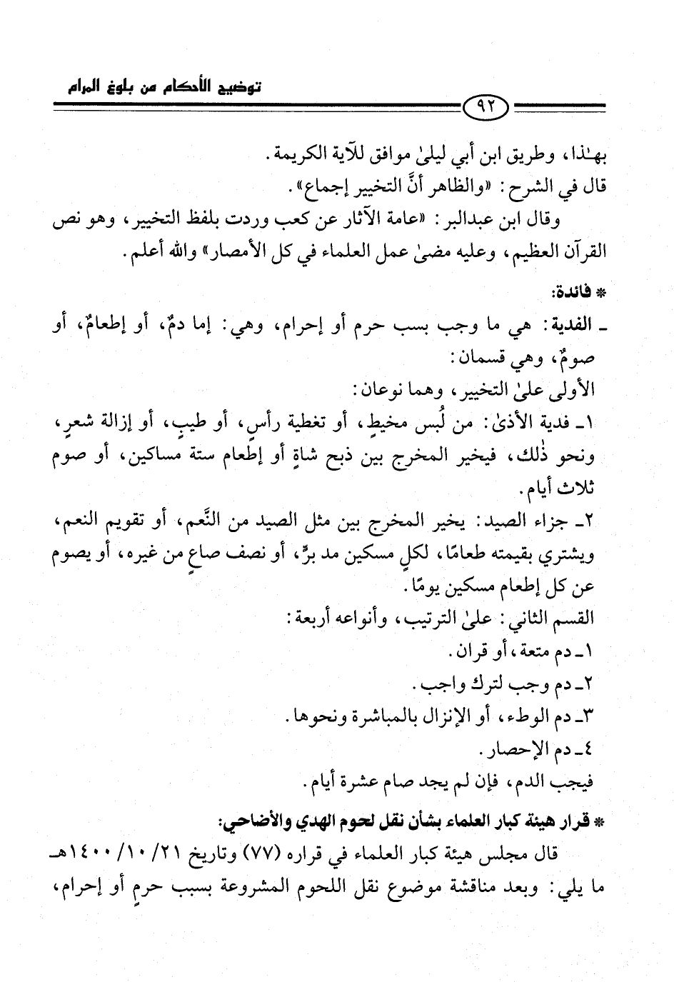 * قرار هيئة كبار العلماء بشأن نقل لحوم الهدي والأضاحي: