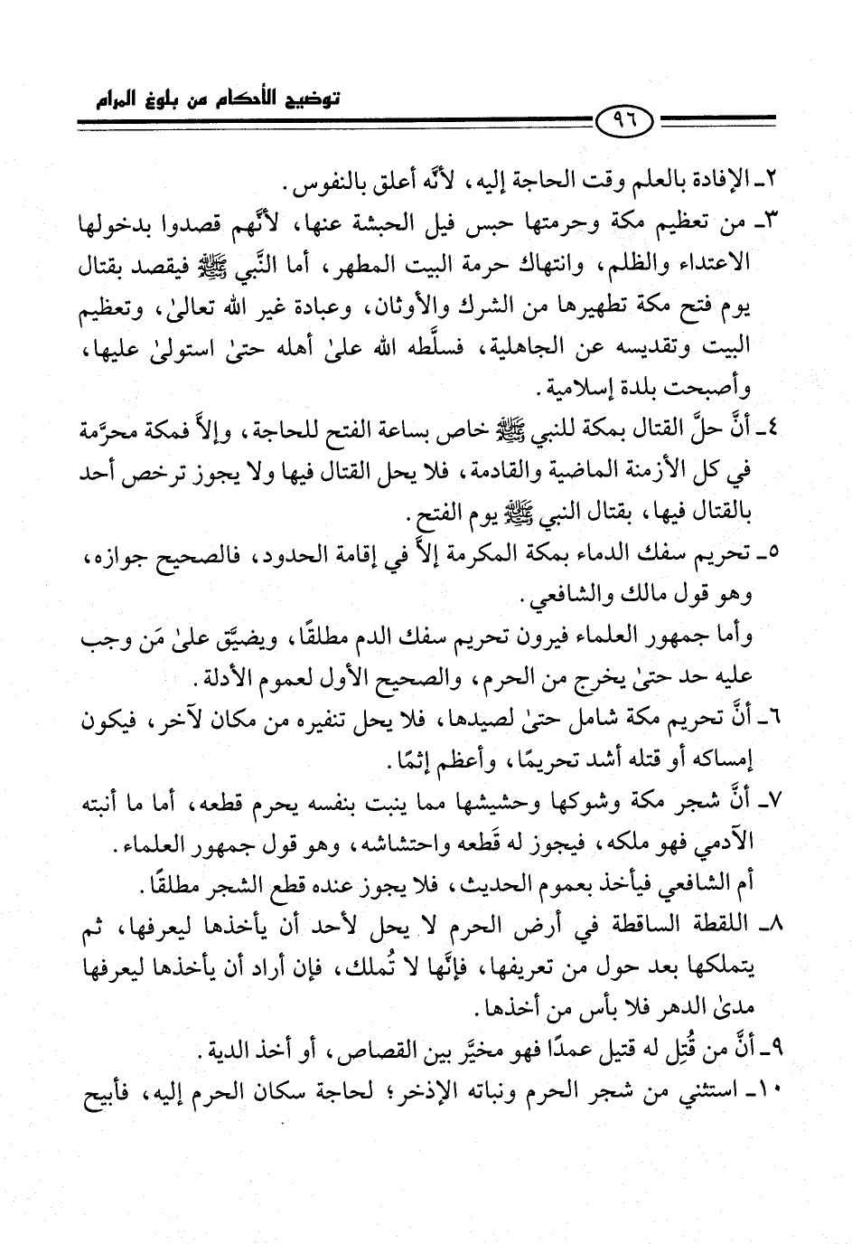 5 - تحريم سفك الدماء بمكة المكرمة إلاَّ في إقامة الحدود، فالصحيح جوازه، وهو قول مالك والشافعي.