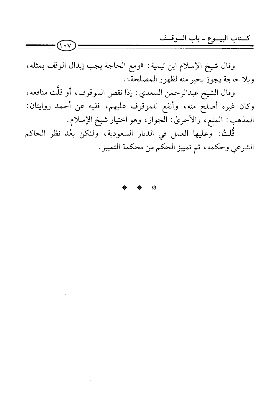 وقال الشيخ عبد الرحمن السعدي: إذا نقص الموقوف، أو قلَّت منافعه، وكان غيره أصلح منه، وأنفع للموقوف عليهم، ففيه عن أحمد روايتان: المذهب: المنع، والأخرى: الجواز، وهو اختيار شيخ الإسلام.