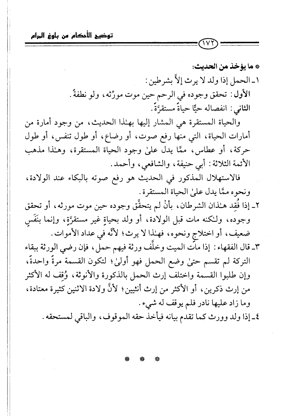 1 - الحمل إذا ولد لا يرث إلاَّ بشرطين: