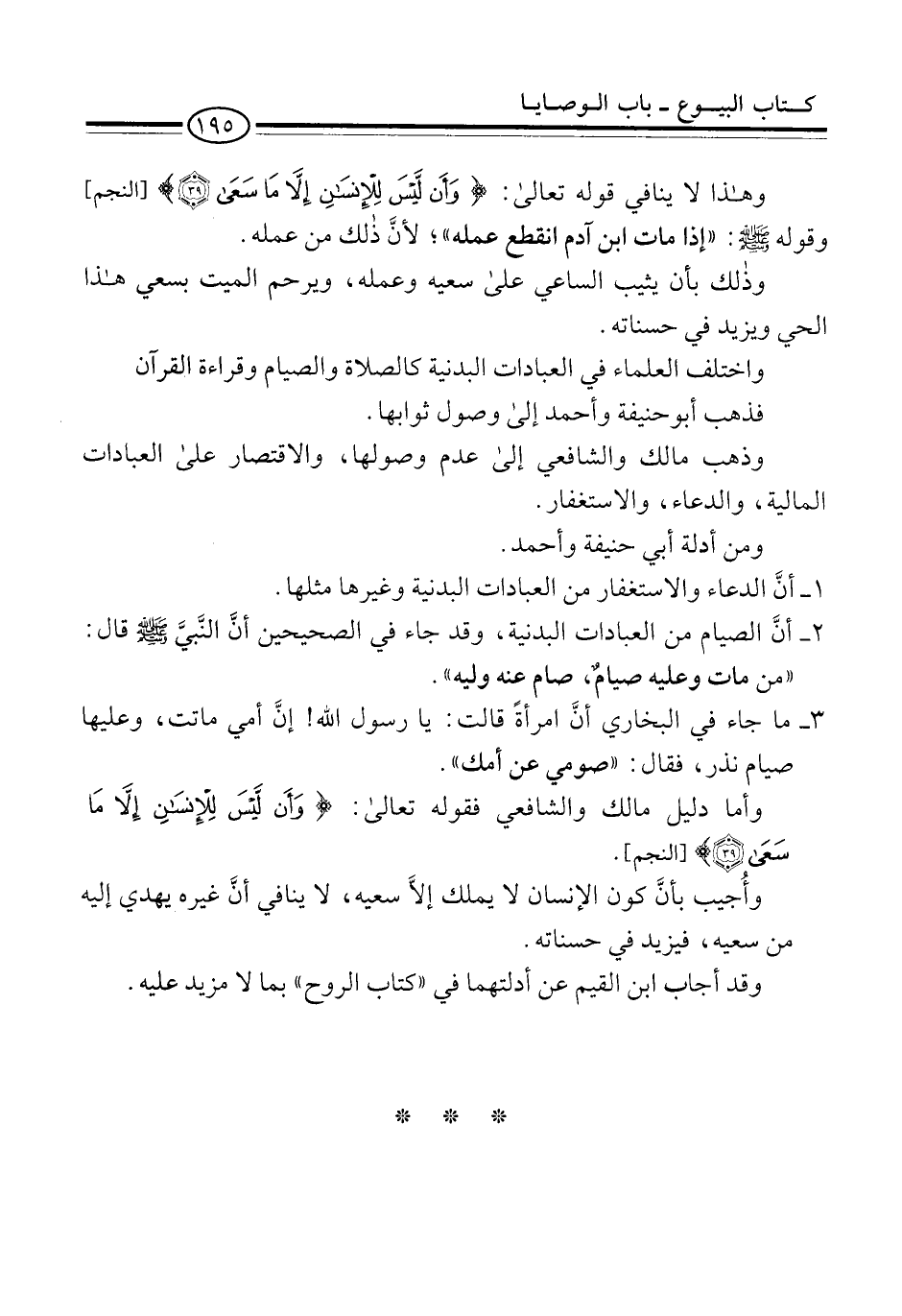 وهذا لا ينافي قوله تعالى: {وَأَنْ لَيْسَ لِلْإِنْسَانِ إِلَّا مَا سَعَى (39)} [النجم] وقوله -صلى الله عليه وسلم-: "إذا مات ابن آدم انقطع عمله"؛ لأنَّ ذلك من عمله.