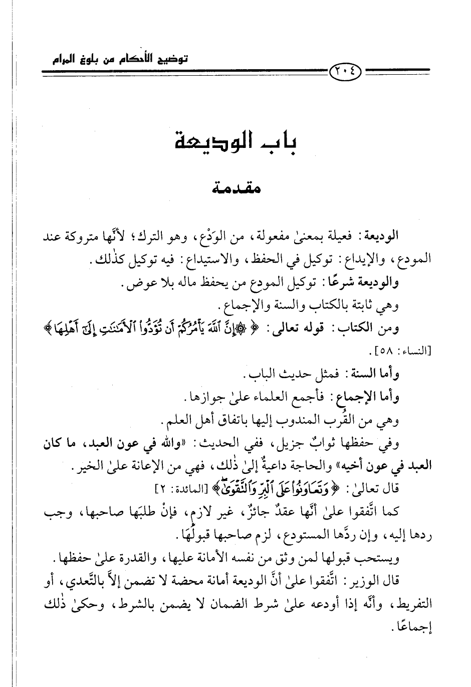 ومن الكتاب: قوله تعالى: {إِنَّ اللَّهَ يَأْمُرُكُمْ أَنْ تُؤَدُّوا الْأَمَانَاتِ إِلَى أَهْلِهَا} [النساء: 58].