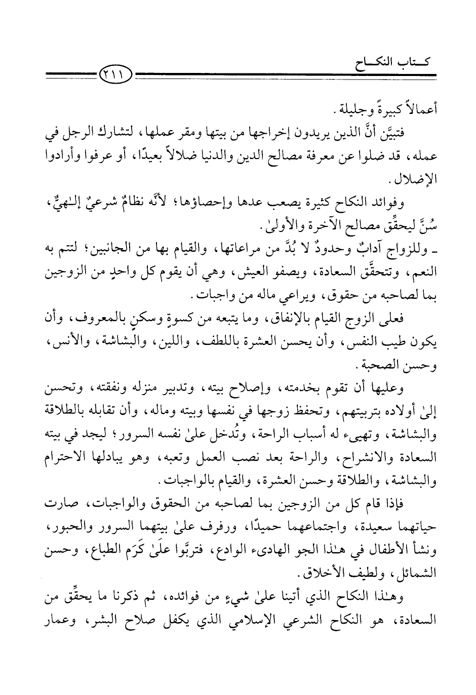 وهذا النكاح الذي أتينا على شيءٍ من فوائده، ثم ذكرنا ما يحقِّق من السعادة، هو النكاح الشرعي الإِسلامي الذي يكفل صلاح البشر، وعمار