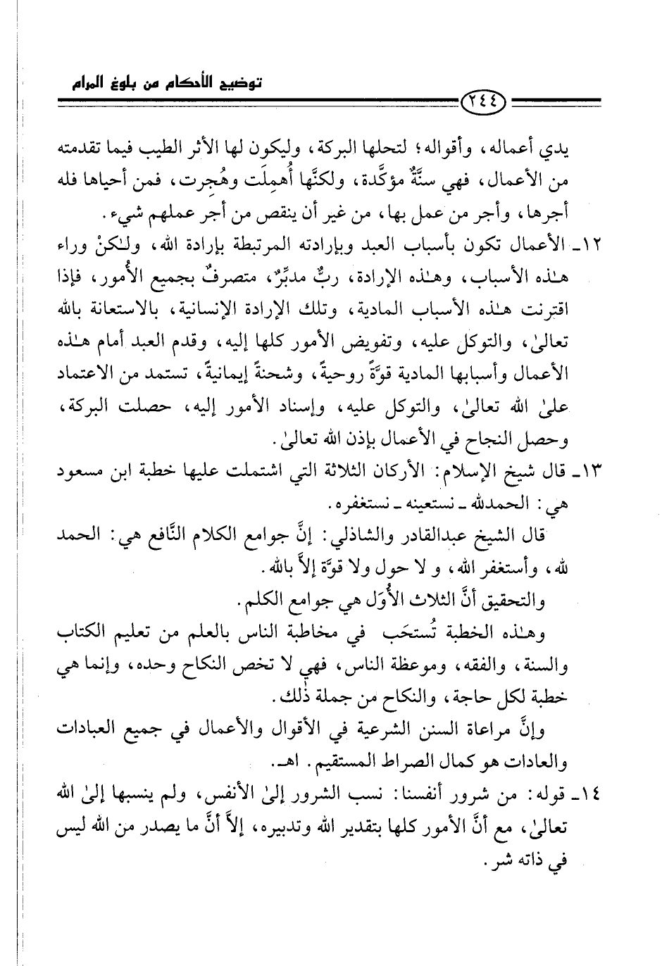 13 - قال شيخ الإِسلام: الأركان الثلاثة التي اشتملت عليها خطبة ابن مسعود هي: الحمد لله -نستعينه- نستغفره.