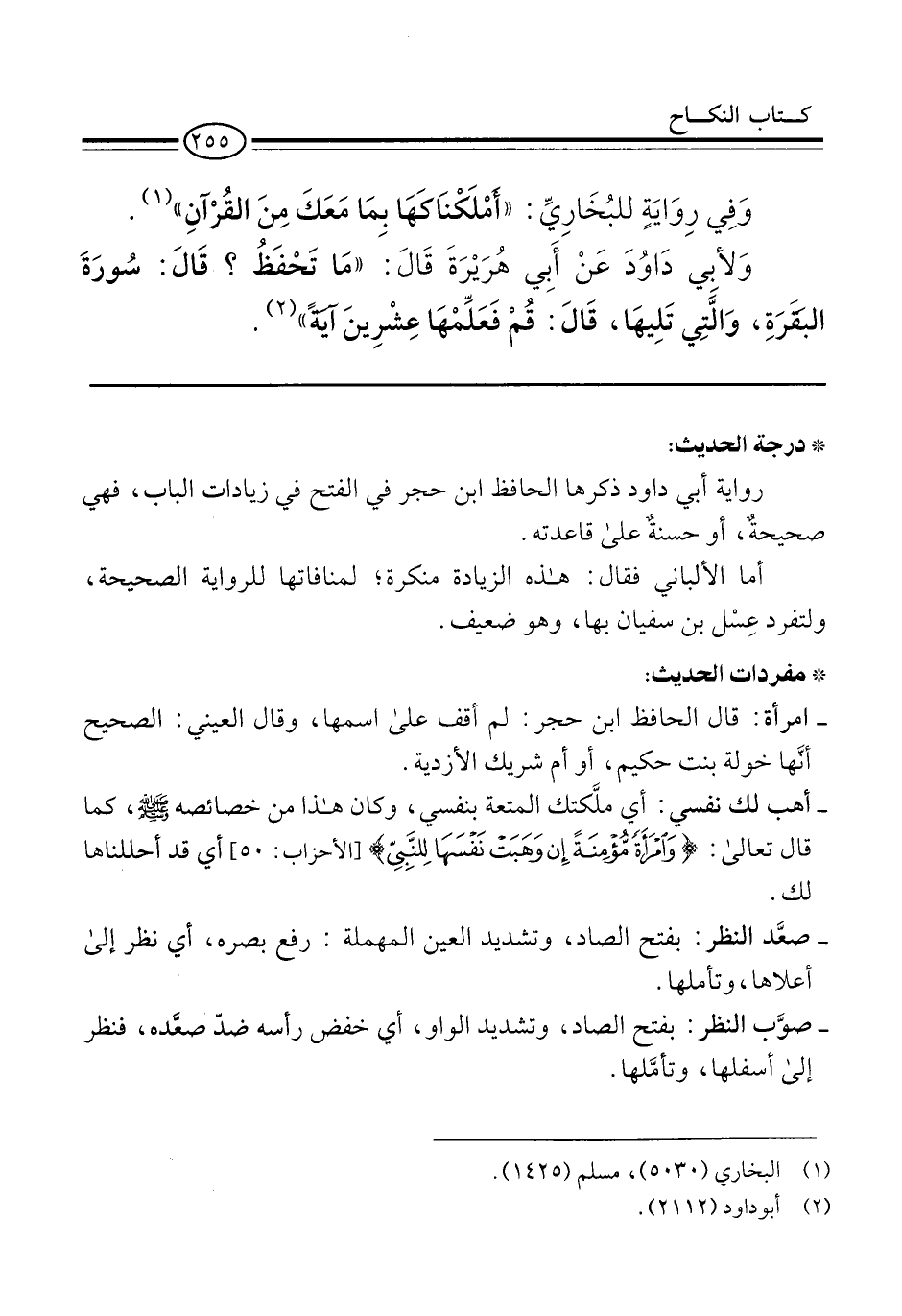 وَفِي رِوَايَةٍ للبُخَارِيِّ: "أمْلَكْنَاكَهَا بِمَا مَعَكَ مِنَ القُرْآنِ" (¬1).