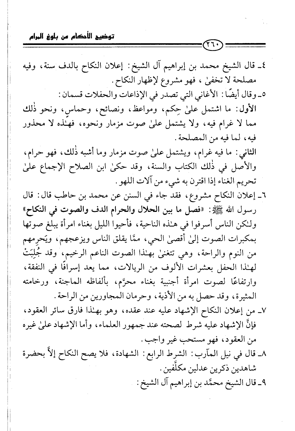 4 - قال الشيخ محمد بن إبراهيم آل الشيخ: إعلان النكاح بالدف سنة، وفيه مصلحة لا تخفى، فهو مشروع لإظهار النكاح.