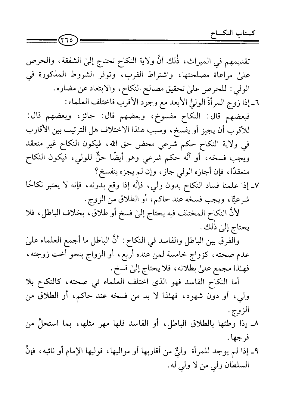 9 - إذا لم يوجد للمرأة وليٌّ من أقاربها أو مواليها، فوليها الإِمام أو نائبه، فإنَّ السلطان ولي من لا ولي له.