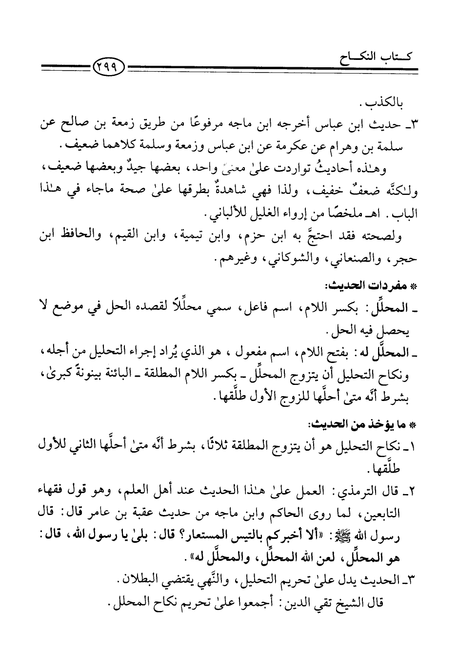 2 - قال الترمذي: العمل على هذا الحديث عند أهل العلم، وهو قول فقهاء التابعين، لما روى الحاكم وابن ماجه من حديث عقبة بن عامر قال: قال رسول الله -صلى الله عليه وسلم-: "ألا أخبركم بالتيس المستعار؟ قال: بلى يا رسول الله، قال: هو المحلِّل، لعن الله المحلِّل، والمحلَّل له".